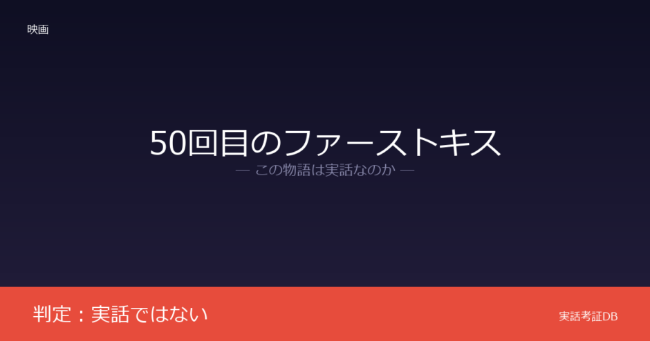 映画『50回目のファーストキス』の判定は「実話ではない」です。本作は2004年のハリウッド映画『50 First Dates』の日本版リメイクであり、オリジナル版にも実話に基づくという公式情報は確認されていません。
