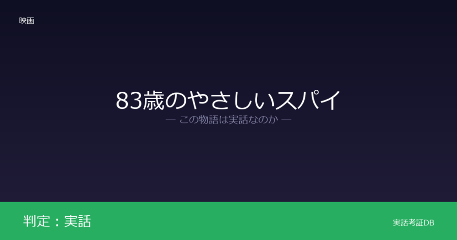 映画『83歳のやさしいスパイ』の判定は「実話」です。本作はドキュメンタリー映画であり、実際の潜入調査をカメラが記録した作品です。