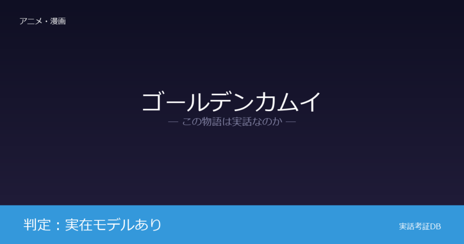 『ゴールデンカムイ』の判定は「実在モデルあり」です。アイヌ金塊争奪戦という主軸ストーリーは創作ですが、主人公をはじめ多くのキャラクターに実在のモデルが存在します。