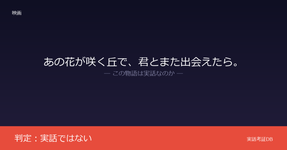 映画『あの花が咲く丘で、君とまた出会えたら。』は、知覧特攻基地の史実を背景にしていますが、判定は「実話ではない」です。