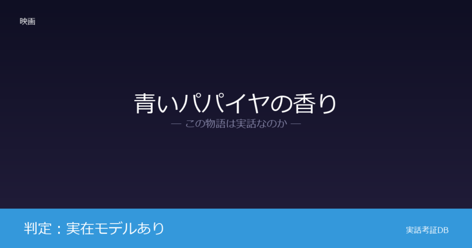 映画『青いパパイヤの香り』の判定は「実在モデルあり」です。トラン・アン・ユン監督が自身の母親の姿や仕草を着想元にしたと複数のインタビューで語っていますが、物語自体はフィクションとして創作されています。