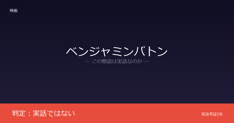 「ベンジャミン・バトンって本当にあった話?」と聞かれることがありますが、本作は完全なフィクションです。原作はF・スコット・フィッツジェラルドの短編小説であり、映画にも「Based on a true story」の表記はありません。実在の人物や事件をモデルにしたという公式情報も確認されていません。
