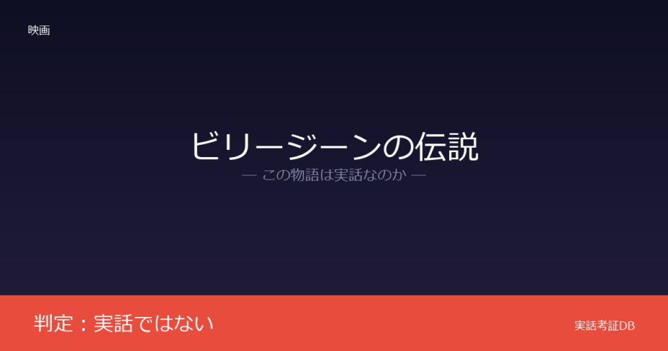 映画『ビリージーンの伝説』の判定は「実話ではない」です。脚本家自身がオリジナル脚本であると明言しており、実在の事件や人物を映画化した作品ではありません。