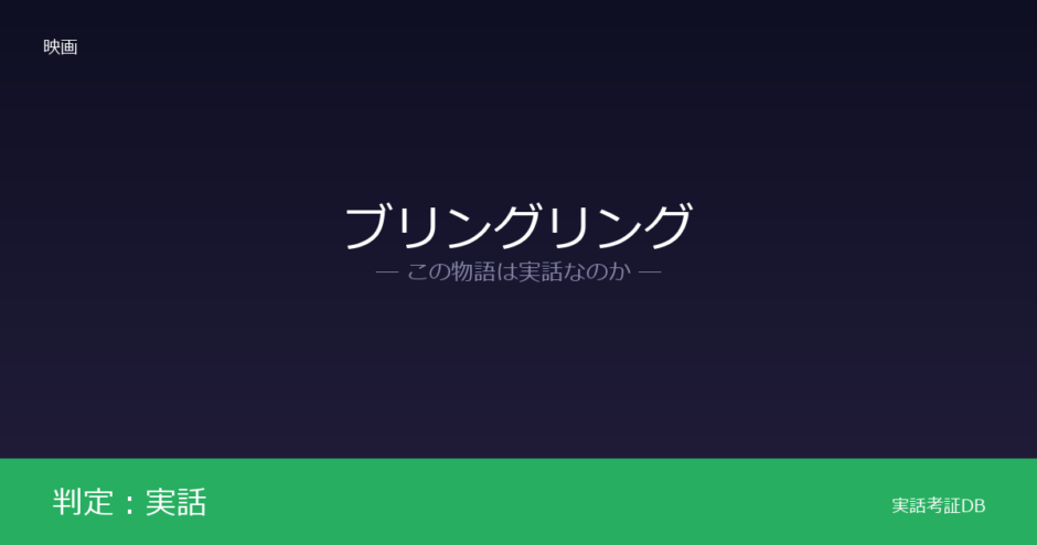 映画『ブリングリング』は、2008年10月から2009年8月にかけてカリフォルニア州で実際に起きたハリウッドセレブ宅連続窃盗事件を映画化した作品です。映画公式クレジットにVanity Fair誌の記事が原作と明記されており、登場人物の名前は変更されていますが事件の経緯はほぼ忠実に再現されています。判定は「実話」です。