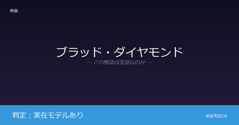 ネット上では「ブラッド・ダイヤモンドは実話」「登場人物にモデルがいる」という情報も見られますが、主要人物が特定の実在人物に基づくという公式な確認はありません。史実の構造を借りた「実在モデルあり」の作品であり、特定の実話を再現した映画ではないという点が正確な理解です。