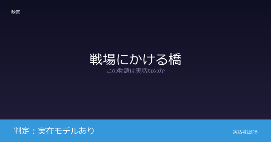 映画『戦場にかける橋』の判定は「実在モデルあり」です。第二次世界大戦中の泰緬鉄道建設という史実を背景に、ピエール・ブールの小説を映画化した作品ですが、物語そのものは大幅な脚色を含んでいます。