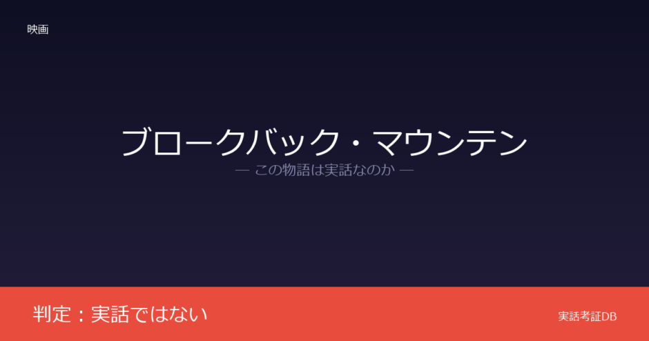 映画『ブロークバック・マウンテン』は特定の実話に基づいた作品ではありません。原作者E・アニー・プルーがワイオミング州での日常的な観察から着想を得て創作したフィクション短編小説が原作です。プルー自身が特定の実話・実在人物には基づいていないと明言しており、判定は「実話ではない」です。