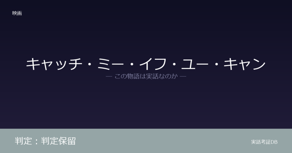 映画『キャッチ・ミー・イフ・ユー・キャン』の判定は「判定保留」です。原案となった回想録の信憑性に疑義が示されており、どこまでが実話かは現時点で確定できません。