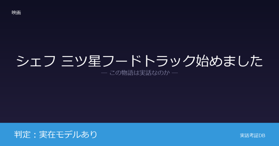 映画『シェフ 三ツ星フードトラック始めました』は、脚本・監督・主演のジョン・ファヴローによるオリジナル脚本の作品です。ただし、主人公が高級レストランを辞めてフードトラックを始めるという展開は、韓国系アメリカ人シェフのロイ・チョイがKogi BBQを創業した実体験に着想を得ています。ファヴロー自身も大作映画から低予算インディーズへ転身した経験を主人公に重ねており、判定は「実在モデルあり」です。