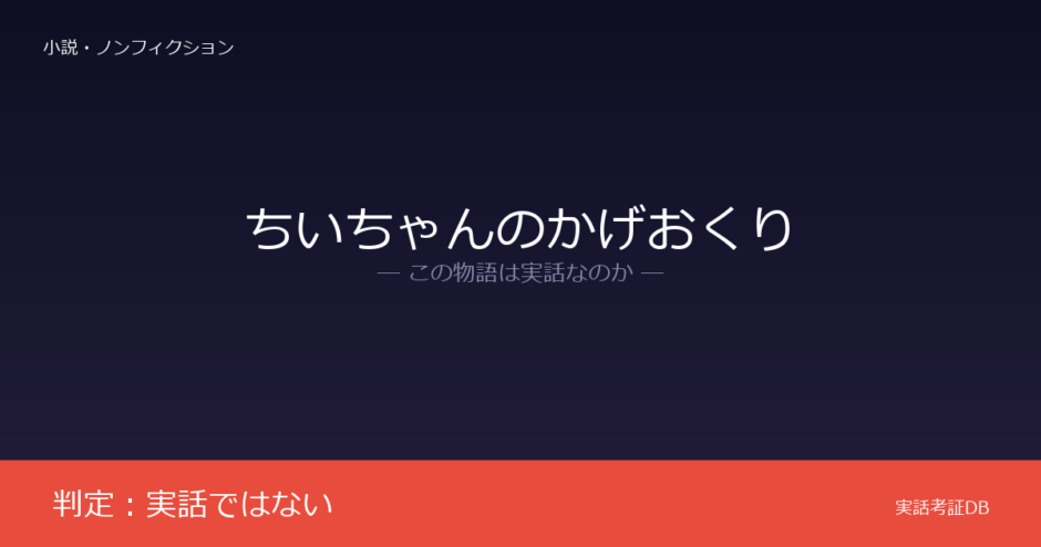 『ちいちゃんのかげおくり』の判定は「実話ではない」です。あまんきみこによる創作児童文学であり、特定の実話に基づく作品ではありません。