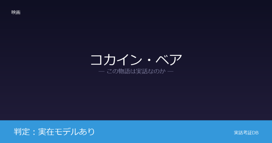 ただし公式が明記しているのはあくまで「着想(Inspired)」であり、「Based on a true story(実話に基づく)」という表現は使われていません。実際の事件から借りているのは「クマがコカインを食べた」という一点であり、映画のストーリーはほぼ全体が創作です。この点から、判定は「実在モデルあり(着想を得た独自物語)」としています。