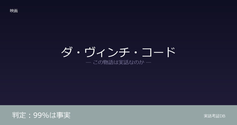 映画『ダ・ヴィンチ・コード』の判定は「実話ではない」です。原作はダン・ブラウンによるフィクション小説であり、ストーリーが実話に基づくという公式情報は存在しません。
