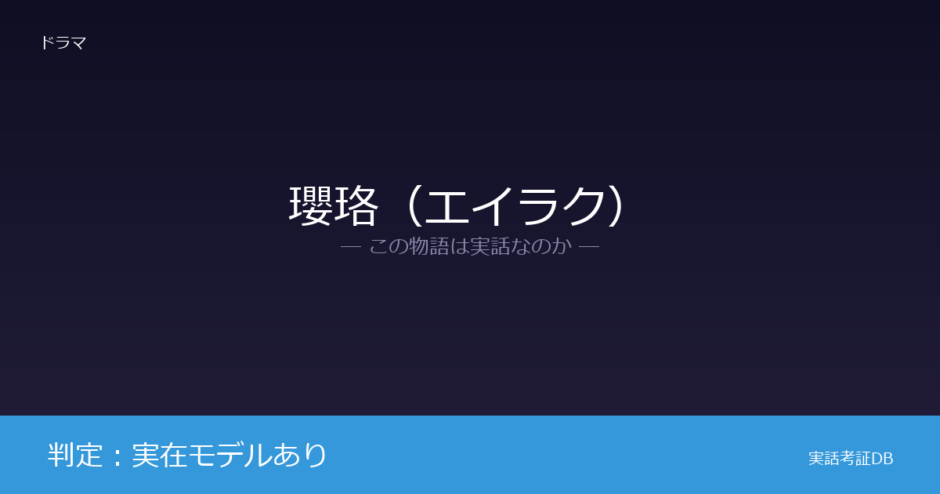 『瓔珞(エイラク)』は清朝・乾隆帝の時代に実在した后妃たちをモデルにした宮廷ドラマです。主人公の魏瓔珞は令妃・孝儀純皇后をモデルとしており、乾隆帝や富察皇后なども史実の人物に基づいています。ただし、復讐劇や陰謀の展開はエンターテインメント向けの創作であり、史実をそのまま描いた作品ではありません。