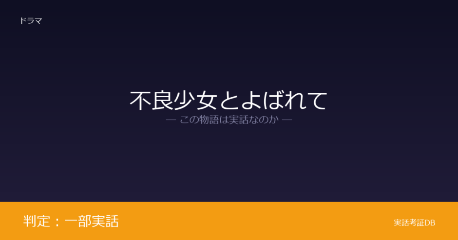 『不良少女とよばれて』は、舞楽家・原笙子が1978年に刊行した自伝的小説をドラマ化した作品です。TBSチャンネルの公式番組紹介に「原笙子の自伝的小説・実録をドラマ化」と明記されているため、判定は「一部実話」です。ただし、恋愛や対立構図などドラマ独自の脚色が多く、原作の内容をそのまま映像化した作品ではありません。