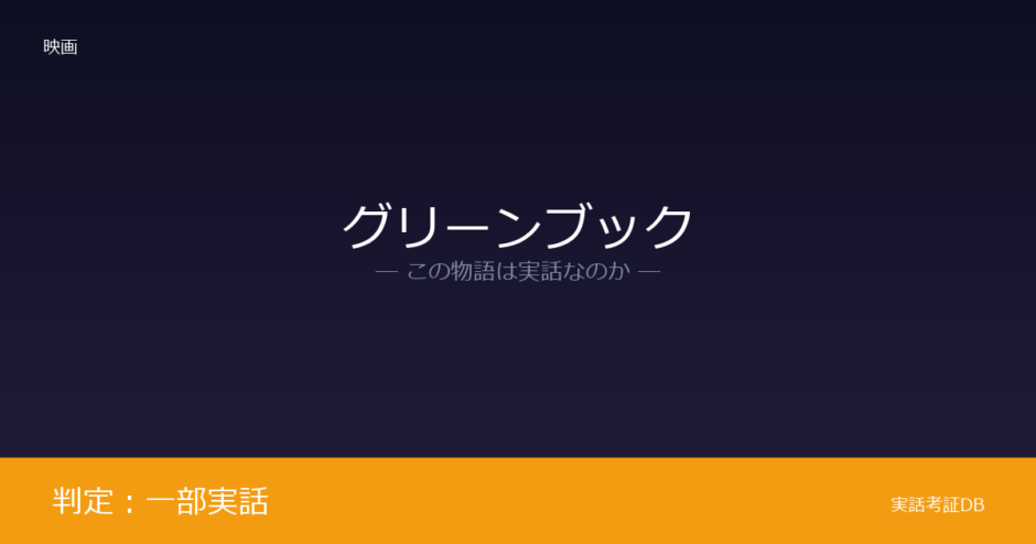 映画『グリーンブック』は、1962年にアメリカ南部をツアーした黒人ピアニストのドン・シャーリーと、運転手兼ボディーガードのトニー・リップの実話に基づいています。公式宣材に「Inspired by a True Friendship」と明記されていますが、旅の期間や人物描写には脚色があり、判定は「一部実話」です。