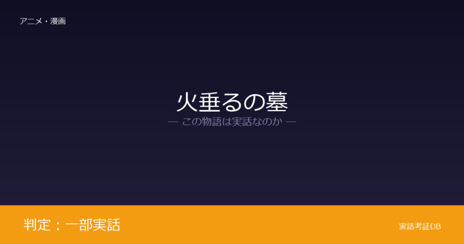 『火垂るの墓』の判定は「一部実話」です。原作者・野坂昭如が自身の戦争体験を下敷きに書いた半自伝的小説が元になっています。