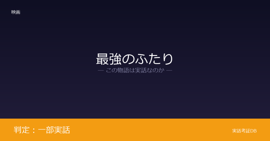 『最強のふたり』は、1993年のパラグライダー事故で四肢麻痺となったフランスの実業家フィリップ・ポゾ・ディ・ボルゴと、介護人アブデル・セロウの交流がベースです。監督が実話であると認めており、判定は「一部実話」です。ただし人物像やエピソードは映画向けに整理されており、全場面が事実ではありません。