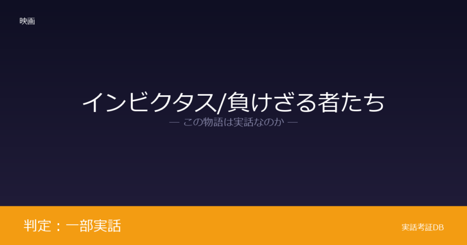 『インビクタス/負けざる者たち』は、南アフリカ初の黒人大統領ネルソン・マンデラが1995年のラグビーW杯を通じて国民融和を目指した史実に基づく作品です。配給元Warner Bros.が「実話ベース」と公式表記しており、原作もノンフィクションであるため判定は「一部実話」です。ただしマンデラとピナールの会話内容や詩の場面には映画独自の脚色が加えられています。