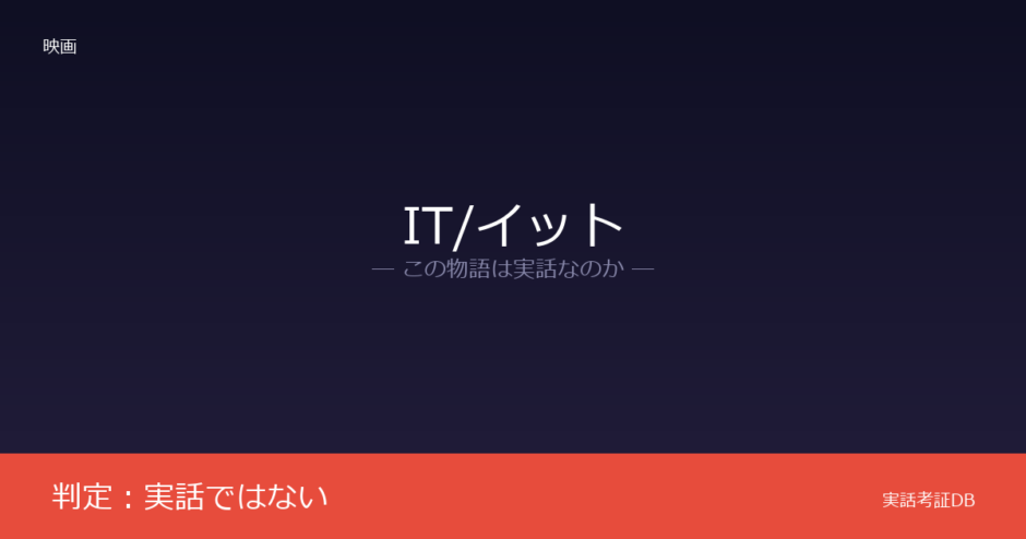 映画『IT/イット』の判定は「実話ではない」です。スティーヴン・キングのホラー小説が原作であり、実在の事件をもとにした作品ではありません。