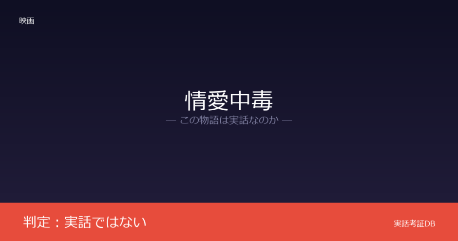 映画『情愛中毒』の判定は「実話ではない」です。キム・デウ監督が脚本も手がけたオリジナルストーリーであり、特定の事件や人物をモデルにしたという公式情報は存在しません。