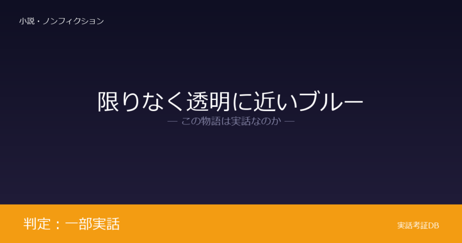『限りなく透明に近いブルー』の判定は「一部実話」です。著者・村上龍が1970年代に東京都福生市で過ごした実体験をもとに書かれた自伝的小説であり、主人公の名前「リュウ」は著者と同じ読みです。