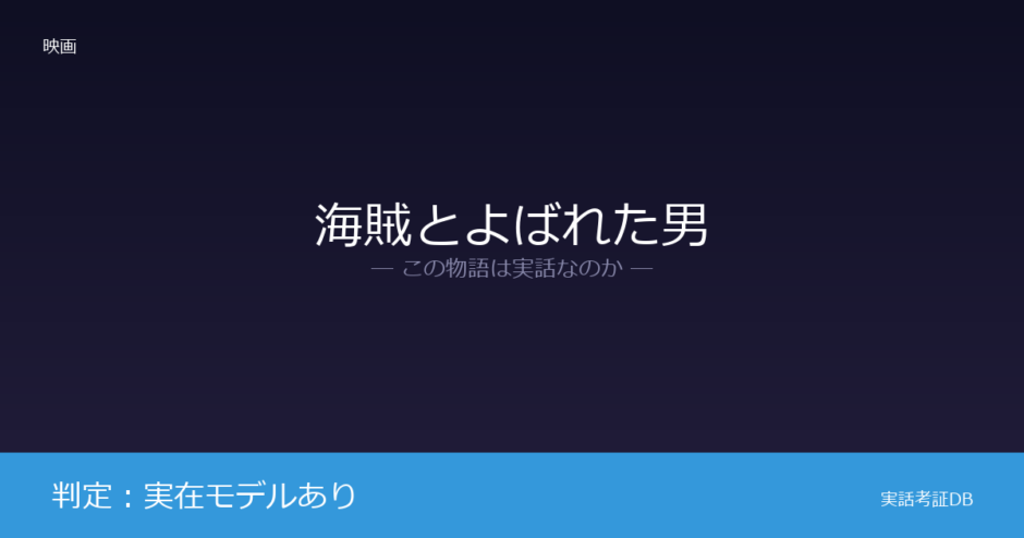 映画『海賊とよばれた男』の判定は「実在モデルあり」です。主人公・国岡鐵造は出光興産創業者の出光佐三をモデルとしていますが、人物名・社名は架空のものに置き換えられ、物語は大幅に脚色されています。