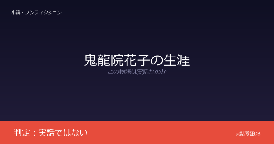 『鬼龍院花子の生涯』の判定は「実話ではない」です。宮尾登美子によるフィクション小説が原作であり、実話をそのまま描いた作品ではありません。