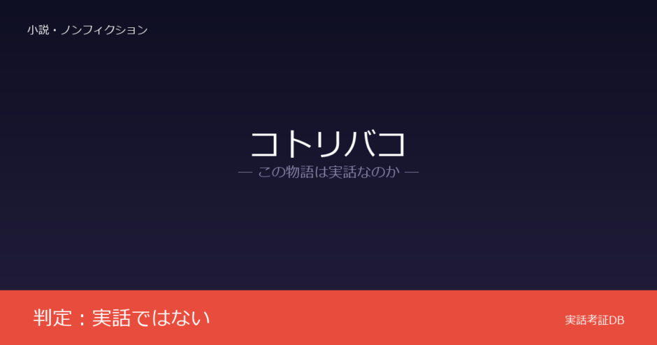 「コトリバコ」の判定は「実話ではない」です。2ちゃんねるオカルト板に投稿されたネット怪談であり、実在の伝承に基づくという公式情報は確認されていません。