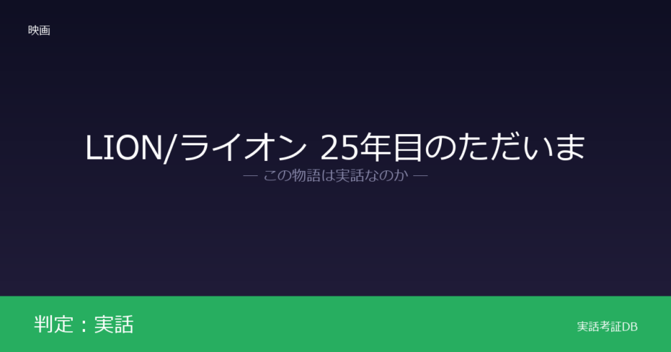 映画『LION/ライオン ~25年目のただいま~』の判定は「実話」です。