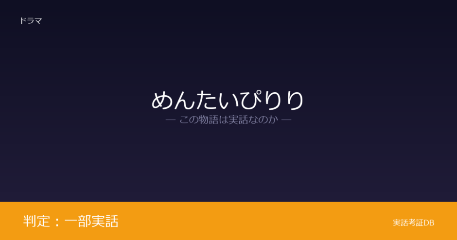 ドラマ『めんたいぴりり』の判定は「一部実話」です。辛子明太子メーカー「ふくや」創業者・川原俊夫の人生をモデルに、博多ホームコメディとして脚色された作品です。