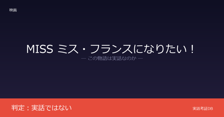 映画『MISS ミス・フランスになりたい!』の判定は「実話ではない」です。監督が友人の性別移行体験から着想を得たと語っていますが、脚本はオリジナルであり実話には基づいていません。