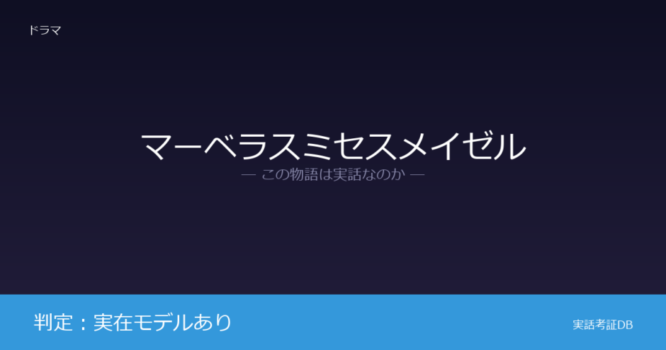 『マーベラス・ミセス・メイゼル』は、1950年代末のニューヨークを舞台に専業主婦がスタンダップコメディアンとして才能を開花させる物語です。制作者エイミー・シャーマン=パラディーノがジョーン・リバーズら実在の女性コメディアンからインスピレーションを得たと公言しており、判定は「実在モデルあり」です。ただし、特定の人物の実話を再現した作品ではなく、複数の着想元をもとにした独自のフィクションです。