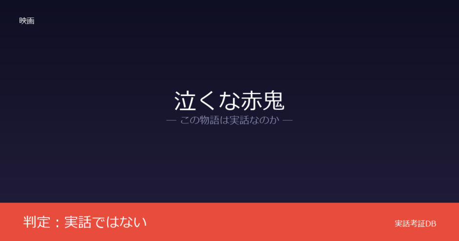 映画『泣くな赤鬼』の判定は「実話ではない」です。原作は重松清の短編小説集『せんせい。』に収録されたフィクション作品であり、実話に基づくという公式情報は確認されていません。