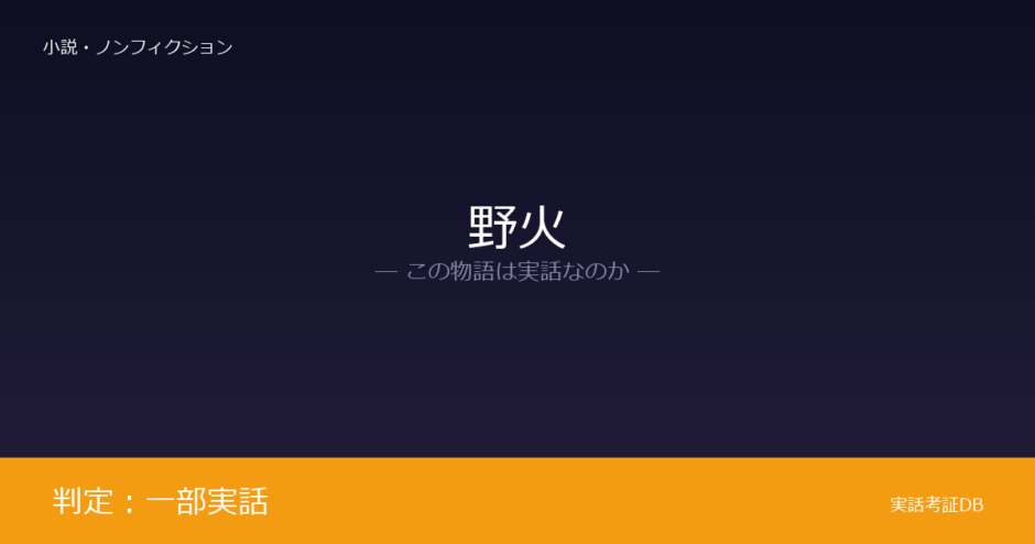 『野火』は著者・大岡昇平が第二次世界大戦中にフィリピンで従軍した実体験を下敷きにした戦争小説です。判定は「一部実話」で、著者の戦場体験が作品の土台となっています。ただし主人公の病状・配属先・行動・結末には大幅な脚色が加えられており、体験をそのまま描いた自伝的作品ではありません。