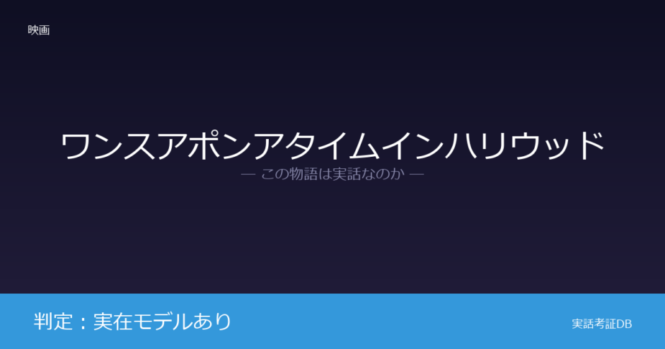 『ワンス・アポン・ア・タイム・イン・ハリウッド』は、1969年8月にロサンゼルスで実際に起きた事件を時代背景として描いたクエンティン・タランティーノ監督の第9作です。シャロン・テートやロマン・ポランスキーなど実在の人物が多数登場しますが、物語の中心となるリック・ダルトンとクリフ・ブースは完全な架空キャラクターです。クライマックスの展開も史実から大きく改変されており、判定は「実在モデルあり」、脚色度は「高」としています。