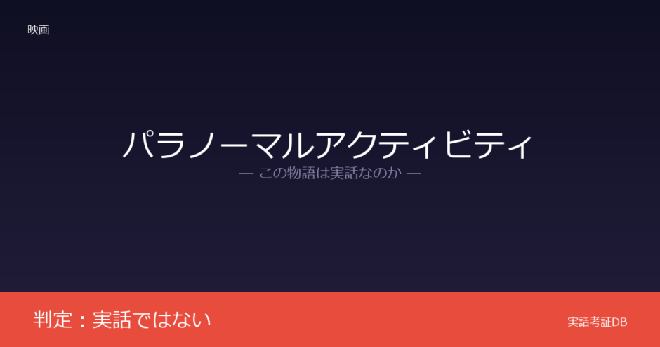 映画『パラノーマル・アクティビティ』の判定は「実話ではない」です。監督オーレン・ペリが自宅で経験した「夜中の物音」から着想を得た完全なフィクション作品であり、実在の心霊事件に基づくという公式情報は存在しません。