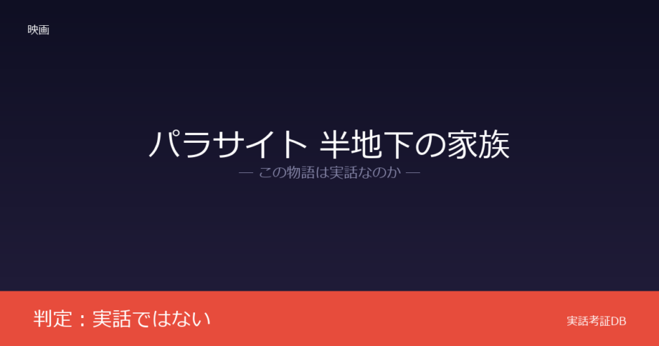 映画『パラサイト 半地下の家族』の判定は「実話ではない」です。ポン・ジュノ監督自身がオリジナル脚本であると明言しており、特定の実話に基づく作品ではありません。