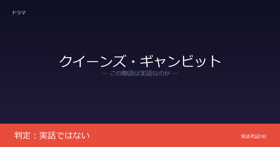 『クイーンズ・ギャンビット』は実話に基づく作品ではありません。原作はウォルター・テヴィスが1983年に発表したフィクション小説であり、主人公ベス・ハーモンは架空の人物です。Netflix公式サイトにも「実話に基づく」との記載はなく、判定は「実話ではない」です。