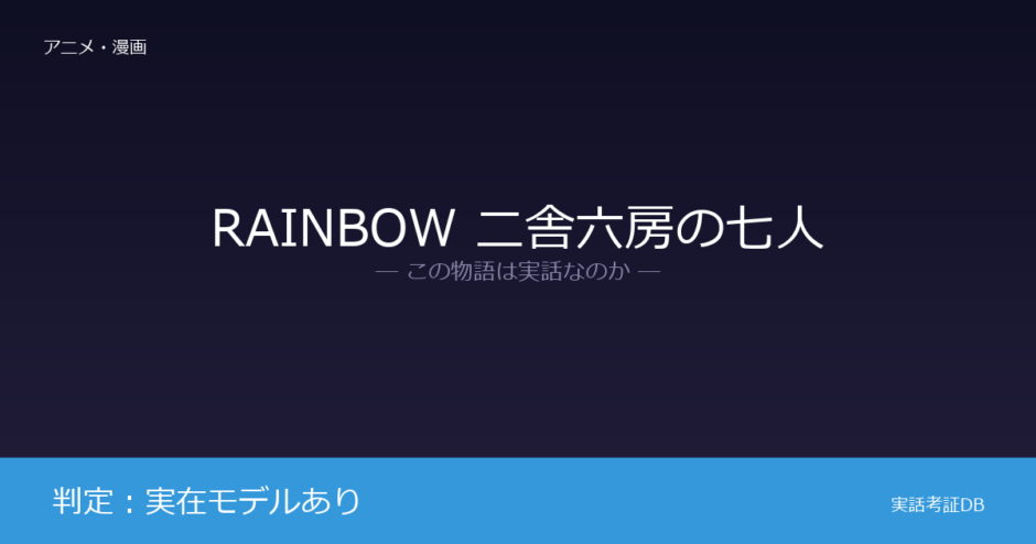 『RAINBOW 二舎六房の七人』の判定は「実在モデルあり」です。原作者・安部譲二の戦後少年院体験が物語の着想源とされています。