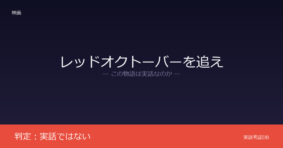 映画『レッド・オクトーバーを追え!』の判定は「実話ではない」です。原作はトム・クランシーのフィクション小説であり、実話に基づくという公式情報は存在しません。