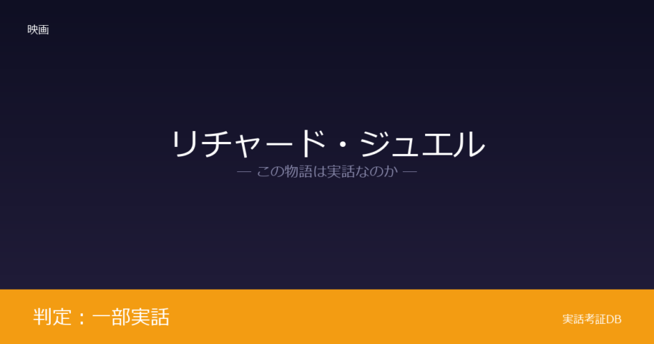 映画『リチャード・ジュエル』は、1996年アトランタ五輪期間中に起きたセンテニアル・オリンピック公園爆破事件を基にした作品です。爆弾を発見して多くの命を救いながら、FBIとメディアに犯人視された警備員の実話がベースになっています。ただし会話の再構成や記者像の脚色があり、判定は「一部実話」です。