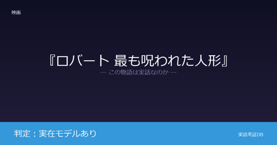 映画『ロバート 最も呪われた人形』の判定は「実在モデルあり」です。フロリダ州キーウェストに実在する「世界一呪われた人形」ロバート人形の伝説に着想を得た作品ですが、舞台・人物・ストーリーは大幅に創作されています。
