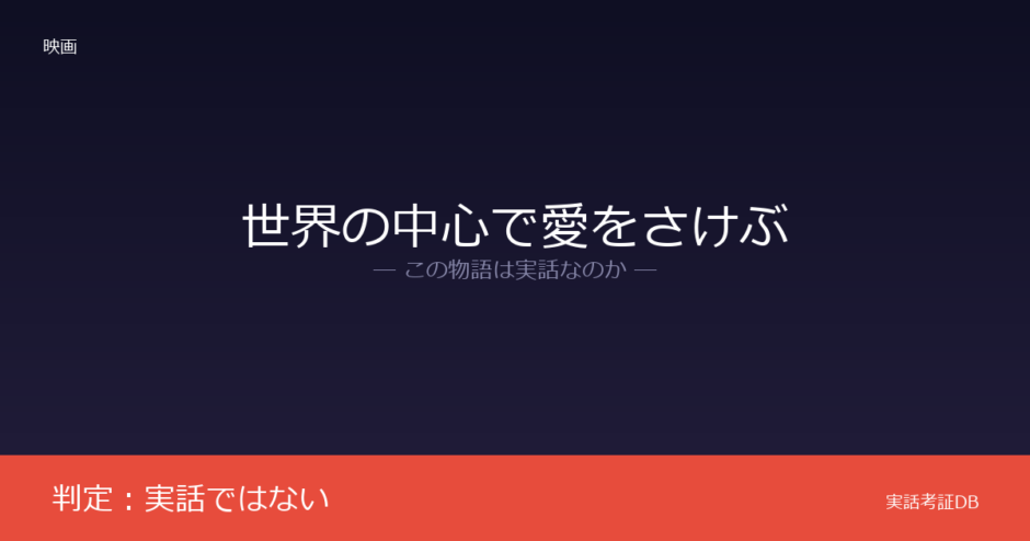 映画『世界の中心で、愛をさけぶ』の判定は「実話ではない」です。原作者の片山恭一氏が完全なフィクションであると明言しています。