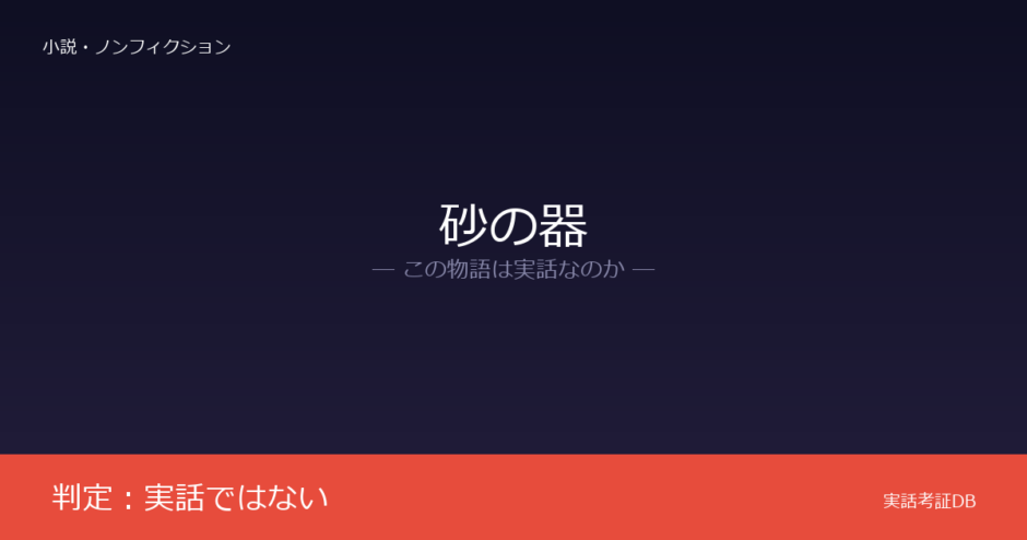 『砂の器』は「実話ではない」と判定できる作品です。松本清張が創作した長編推理小説であり、特定の実話に基づくという公式情報は存在しません。
