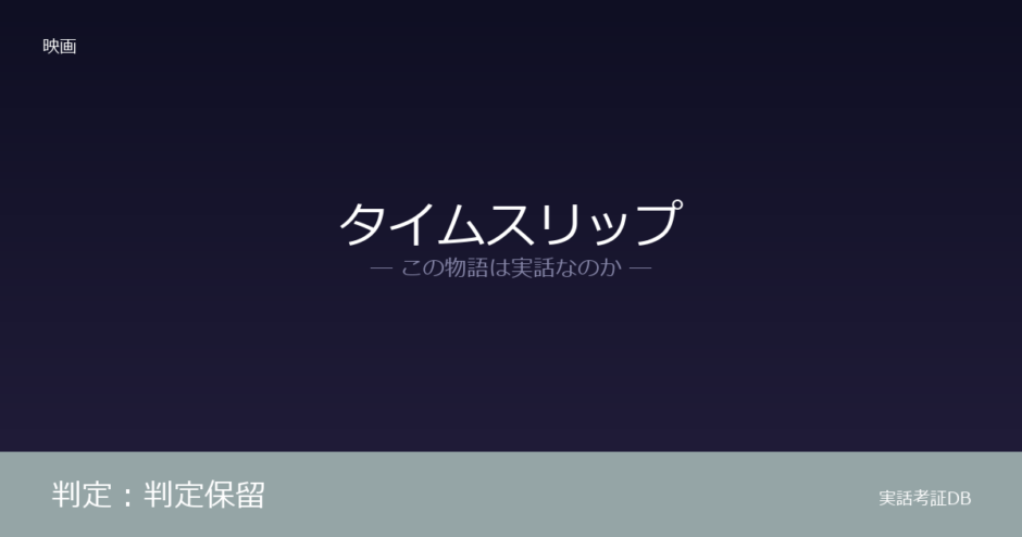 タイムスリップに関する判定は「判定保留」、根拠ランクはD(有力説だが一次ソース弱)です。