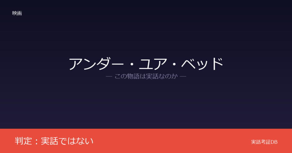 また、Wikipediaの「アンダー・ユア・ベッド」の記事にも、本作が実話に基づくという記述は見当たりません。以上のとおり、公式・一次発言・百科事典的資料のいずれも、本作が実話であるとは述べていません。