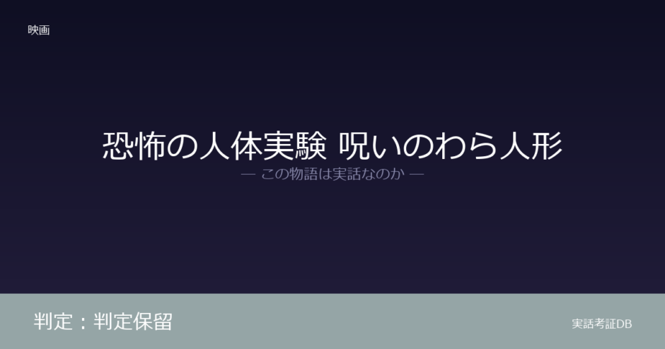 映画『恐怖の人体実験 呪いのわら人形』は検証ドキュメンタリーの体裁をとっていますが、フィクション要素が強く、特定の実話を再現した作品ではありません。「行為の実在」と「効果の実在」を区別して理解することが重要です。