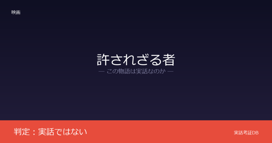 映画『許されざる者』の判定は「実話ではない」です。1992年のクリント・イーストウッド版も、2013年の渡辺謙主演の日本版リメイクも、実話に基づくという公式情報は存在しません。