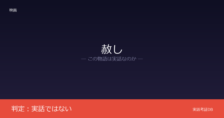 映画『赦し』の判定は「実話ではない」です。監督のアンシュル・チョウハンがオリジナル脚本による作品であると明言しており、特定の実在事件を映画化したものではありません。
